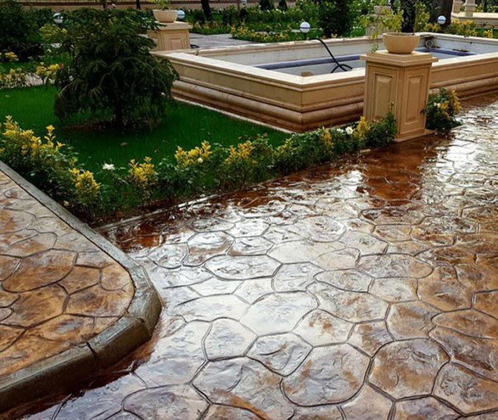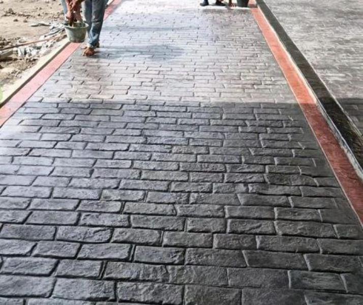 - بتن استامپ (Stamped Concrete): در این روش، از قالبهای خاص برای ایجاد طرحهای سهبعدی بر روی سطح بتن استفاده میشود. این قالبها میتوانند طرحهایی مانند سنگفرش، آجر، چوب و دیگر الگوهای طبیعی را بهصورت برجسته بر روی سطح بتن ایجاد کنند.