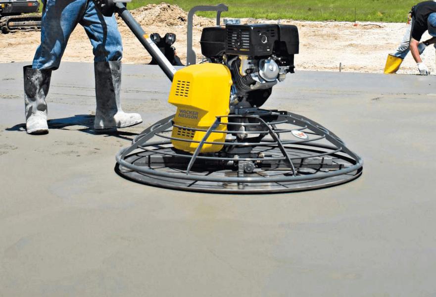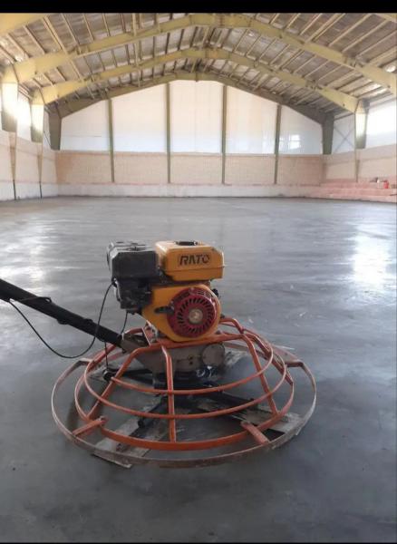 - استفاده از ماله پروانهای: پس از تنظیم اولیه سطح بتن، از دستگاه ماله پروانهای برای پرداخت و صافسازی بیشتر سطح استفاده میشود. این دستگاه دارای تیغههای پروانهای است که به طور چرخشی روی سطح بتن حرکت کرده و باعث فشردهسازی و تسطیح سطح میشود. استفاده از این دستگاه کمک میکند که سطح بتن یکنواخت و مقاوم شود و اثرات مخربی مانند ترکخوردگی یا ایجاد ناهمواری برطرف شود.